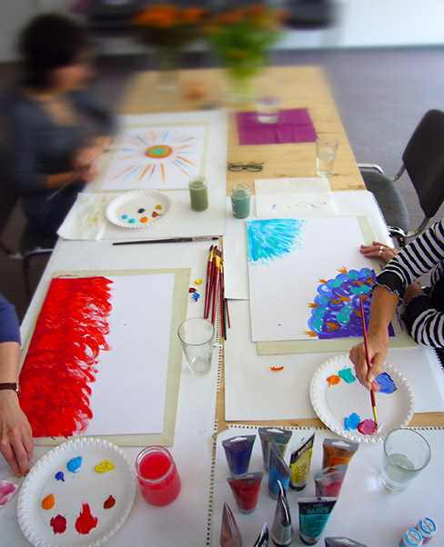 Im Vordergrund steht der Spaß am Experimentieren mit unterschiedlichen Farben und Formen und die ausgleichende Wirkung, die Sie dadurch erfahren.