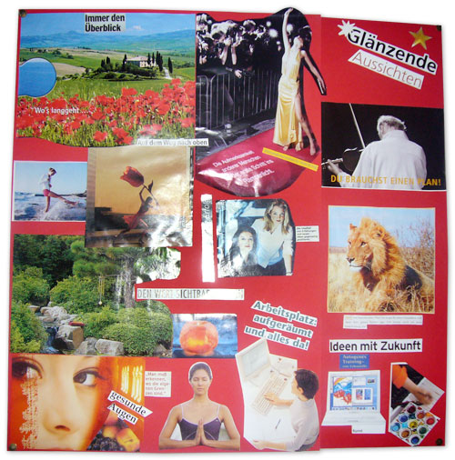 In einem kreativen Prozess gestalten Sie eine Collage, die Ihnen das Erreichen Ihrer Ziele vor Augen führt.